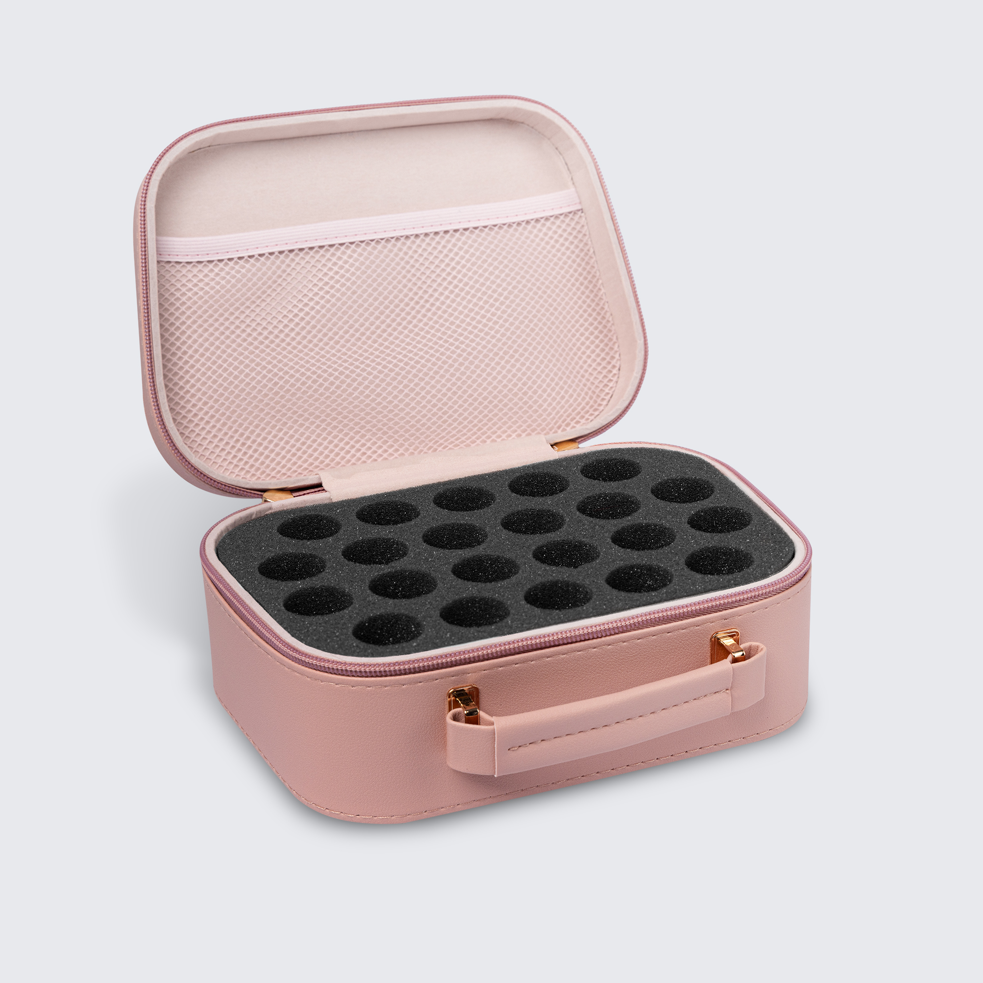 Small foam insert holds up to 22 polish bottles.